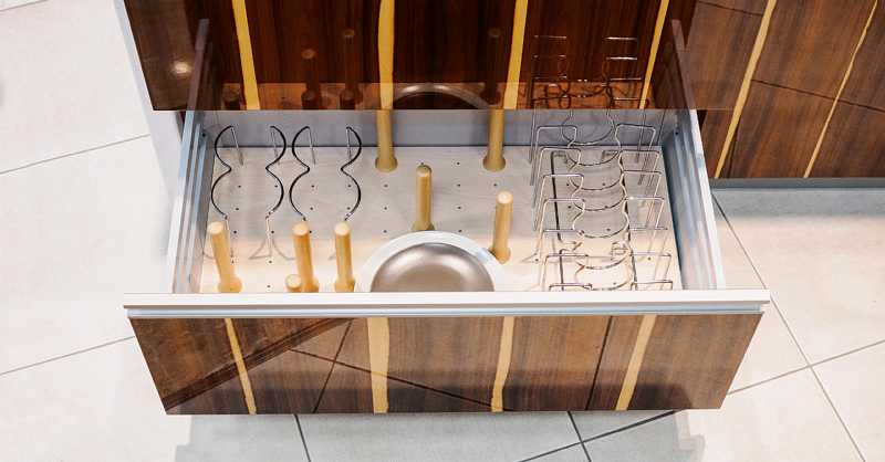 Das Modell gewinnt nach der speziellen Verarbeitung der Frontpartien eine noch größere Exklusivität – damit Sie eine wirklich stilvolle Interieurlösung für die Küche erzielen können.