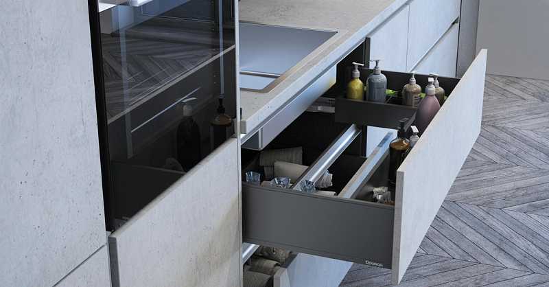 Robuste Beschläge und die Vielfalt an hochwertigen Griffen werden ein zuverlässiger Helfer in Ihrer Küche sein.