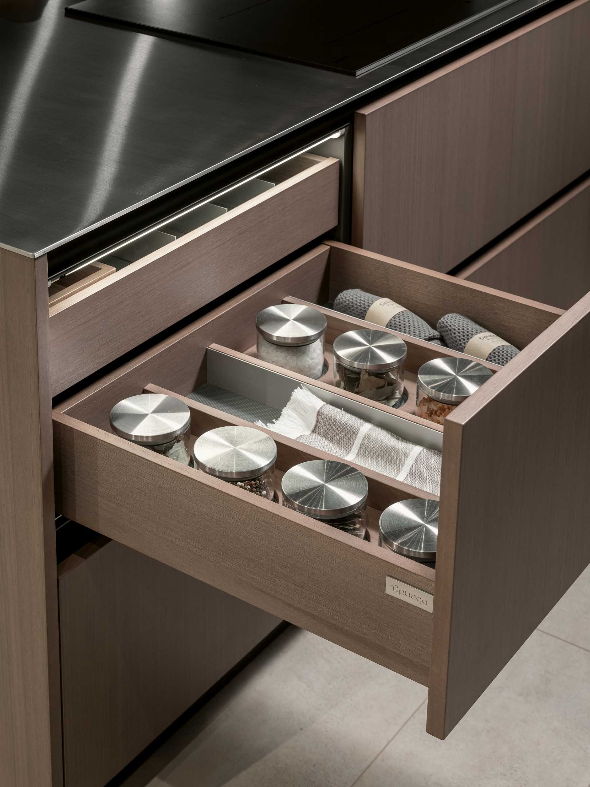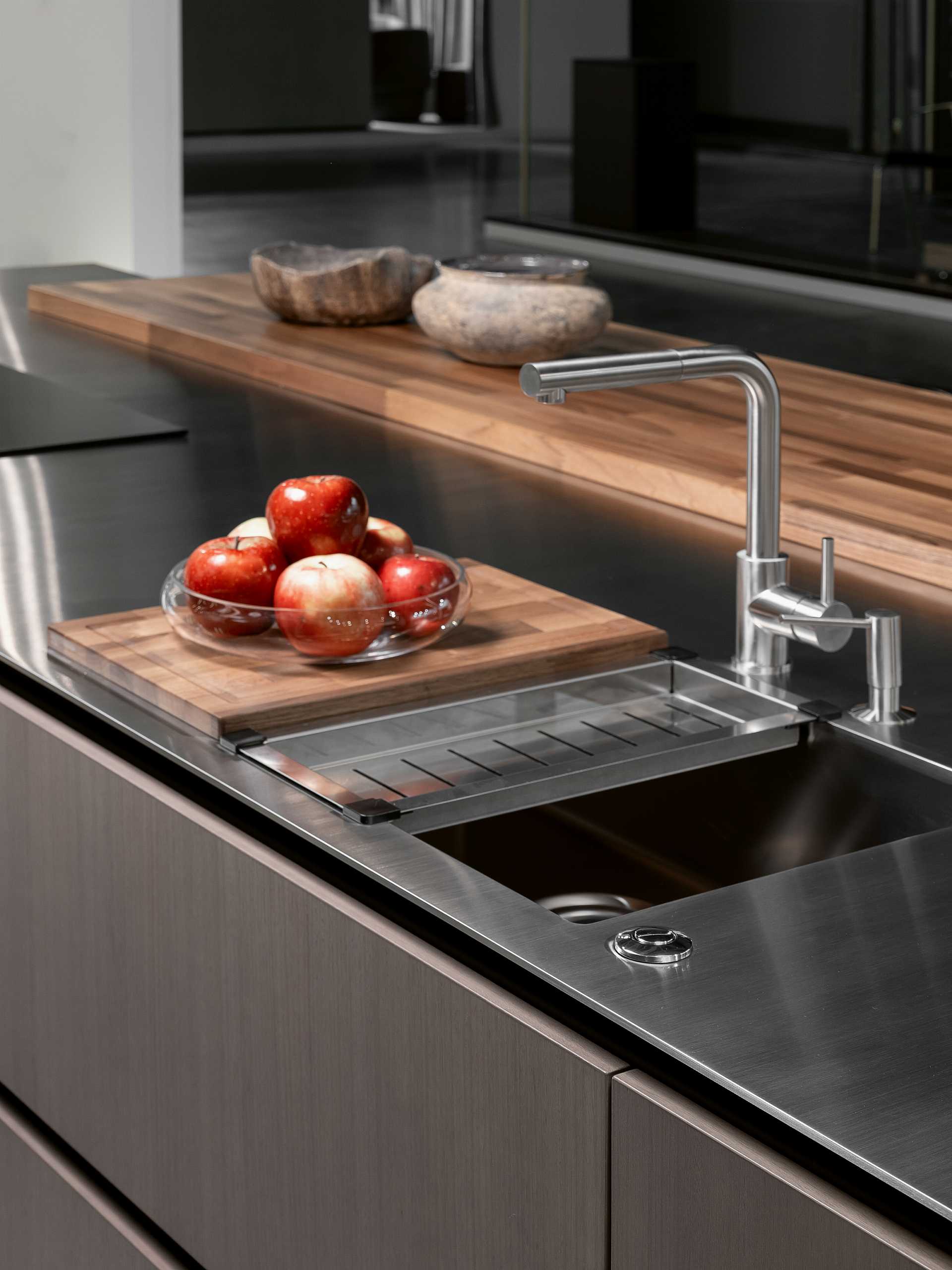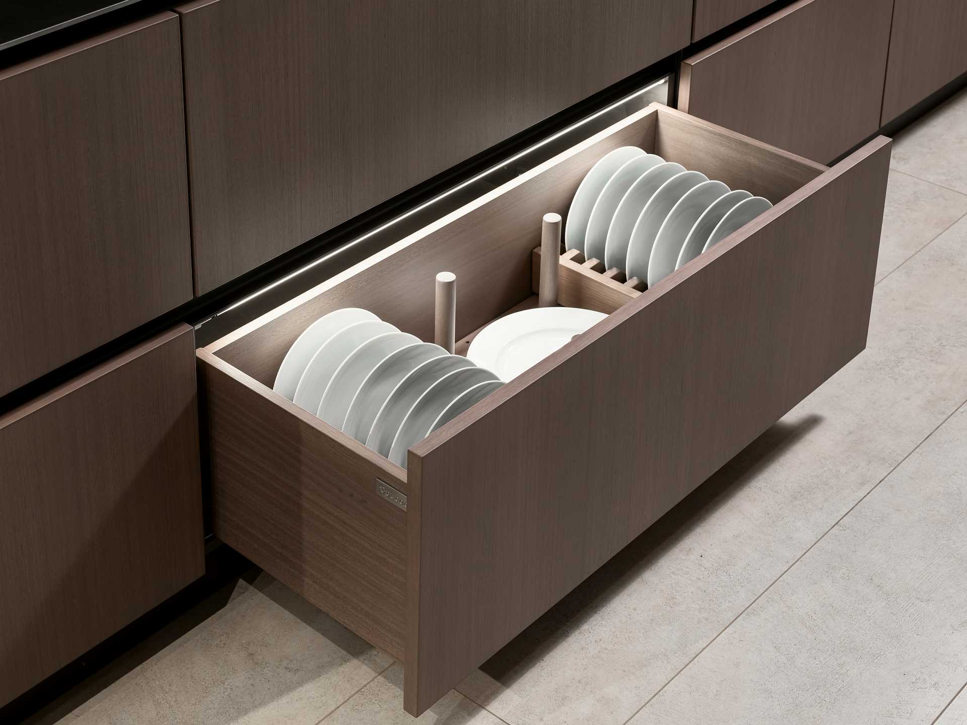 Die Fassaden sind aus lackiertem Glas. Glas ist ein erstaunliches Material, hell und ausdrucksstark und hat einen besonderen Wert und eine besondere Schönheit. Trotz seiner scheinbaren Zerbrechlichkeit ist es überraschend robust und langlebig. Es erzeugt ein Gefühl von unerwarteter Leichtigkeit, und seine Vielfalt an Optionen und haptischen Empfindungen ist erstaunlich.